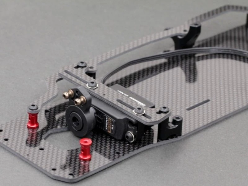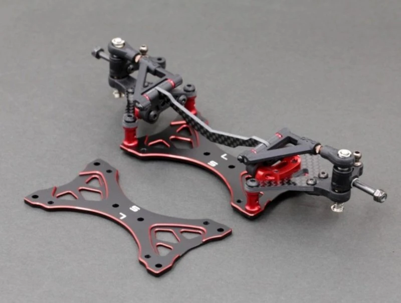 Wheel base (+/-1.5mm) adjustable by aluminum front suspension mount plate.