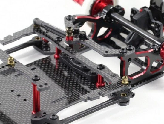 New design graphite upper pod plate and chassis brace, difference angle and position for side tube adjustable.