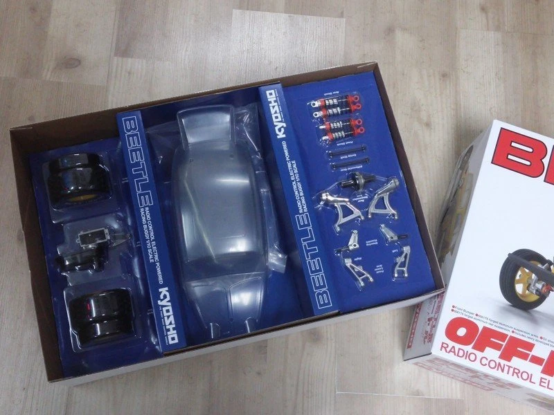 The famous Kyosho Scorpion and Baja Beetle combined into one legendary off-road machine that became synonymous with electric buggy racing in the 1980’s; a name that is still known around the world today. Now, in honor of the original Scorpion and its many fans, the Beetle makes a triumphant return with the advanced Scorpion 2014 chassis featuring the same basic ladder frame 2WD structure as the original, but with the latest technology and components. from the kit, making assembly easier and the finished chassis lighter and more rigid. From experts familiar with the Scorpion’s standard of performance to present-day drivers unaware of the Scorpion legend, all will enjoy the Scorpion experience that inspired so many.