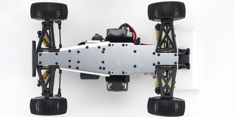 The 6061T6 aluminum alloy main chassis achieves an excellent balance between rigidity and crash resistance and uses hex screws with the countersunk holes for a flat underside of the chassis.