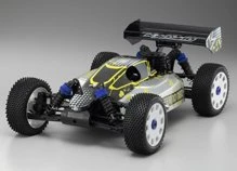 | Powerful Readyset features advanced 2.4GHz KT-200 R/C system with fail-safe function! With an unrivalled record of 8 titles at the bi-annual World Championships, the dynamic performance of the Kyosho Inferno has been concentrated into a new hard charging yet easy to drive machine, suitably named the “Inferno NEO”. Boasting the Inferno’s renowned adaptability on any surface, the NEO features 3.5mm shaft big bore shocks and the same heavy-duty wheels as the high performance MP9, with micro-square pattern tires and resin torque rods (front & rear). A newly designed body with new color scheme also adds superior aerodynamics for awesome speed and easy control. The advanced 2.4GHz Syncro KT-200 control system provides safe and reliable control as soon as it is switched on, without the need to manage frequency bands and is equipped with various additional features that provide precision adjustment of setup. It also includes a fail-safe function that automatically slows the car down in the event of radio signal problems. As the NEO is packaged as a Readyset, you can be charging along at full speed in next to no time just by adding fuel, batteries for the R/C system and engine starting equipment. As the definitive 1/8 GP sports buggy, the Inferno NEO Syncro KT-200 takes you into the thrilling world of off-road racing!