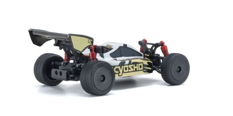 Simply add eight AAA-size alkaline batteries to this Readyset and the MINI-Z Buggy brings the fun of R/C car action. The advanced compact design includes 4WD drive train with slipper clutch to protect the gear system, and 4-wheel independent double wishbone suspension with oil-filled shocks to deliver true racing buggy performance. Most critical components are protected within the high-rigidity dustproof chassis shell. 7-stage geared steering servo provides plenty of torque for precision steering response and combines with the control program to realize the MINI-Z’s signature linear handling and light feel. The circuit board also features manual left/right volume adjustment for the optional gyro unit (sold separately) that stabilizes straight line running and improves cornering control. Modeled on the popular Inferno MP9, the MINI-Z buggy body matches performance with style featuring a distinctive new printed color scheme complimented by black wheels for the sharpest looking machine on the track. The fully pre-assembled Readyset package makes it simple and enjoyable for anyone to experience advanced R/C buggy performance, whether it’s your first car or as fun-driving second car.