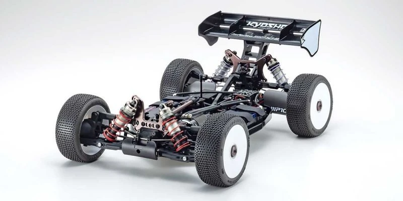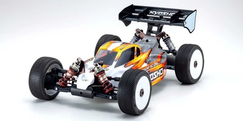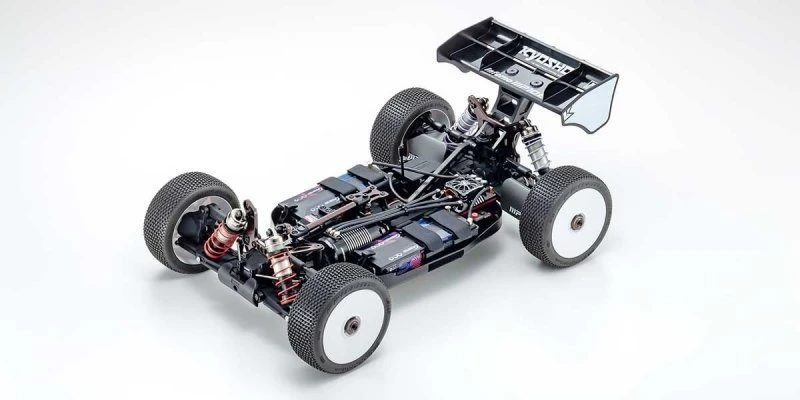 With eight titles at the IFMAR (International Federation of Model Auto Racing) 1/8 scale engine racing buggy World Championships, the Inferno series boasts an unrivaled record of success. Based on the most advanced MP10 model, an electric power unit has transformed this machine to create the new MP10e! Evolution of electric motor and battery technology has delivered speed comparable with engine (GP) models so 1/8 electric racing buggies have become a competition class around the world. The quiet simplicity of electric power opens up more opportunity to enjoy high-performance 1/8 buggy performance. As various manufacturers adapted 1/8 models for competition, Kyosho optimized the weight distribution to enhance the MP10e far beyond the performance of the MP9e Evo. Boasting the performance and reliability of the MP10’s proven suspension and drive system, the MP10e features a specially designed main chassis that provides optimal chassis flex and sure-footed grip with an aerodynamic body designed for this electric model to deliver easy handling at high-speed. The motor mount is compatible with various size motors and supports the left-right distribution of the battery weight. Specially designed receiver box and ESC mount deliver improved maintenance efficiency. For the sharpest racing edge, the enhanced performance of the MP10e will be your first choice in a racing weapon.