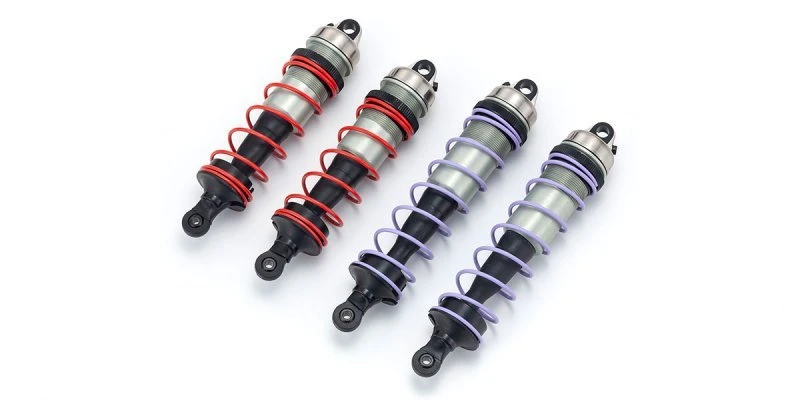 Oil shocks with precision aluminum cylinder cases deliver superior heat dissipation and are included as standard. Big bore shocks provide excellent damping capability and stabilize the posture of the machine. Aluminum shock caps are compatible with both diaphragm and aeration type dampers. Diaphragm type dampers are standard in the kit, however optional Shock Cap Seal Set (No.IFW469-01) allows installation of aeration type.