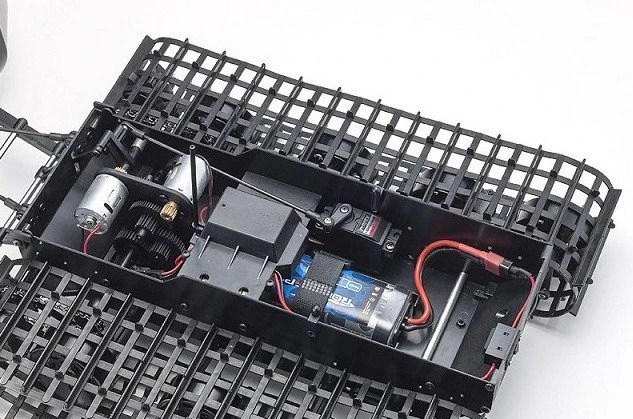 Powered by two independent side-by-side motors, the transmission in the Blizzard FR Readyset delivers awesome power and free control so you can enjoy dominance over any terrain like only a true belted vehicle can deliver. With a suspension system equipped on all wheels, the Blizzard clears every challenge in its path including rocky obstacles, steep hill climbs and gravel or sand that would trap a machine with normal tires. Twin 370 motors and twin KA-17W ESCs deliver forward, reverse, left/right turning and pivot (turns on the spot) As this belted vehicle is fully pre-assembled there are no difficult assembly steps or other work to complete before enjoying its sophisticated mechanics. In addition, controlling the blade arm with the transmitter adds another fascinating aspect to the Blizzard. For great fun in the sand or snow, the Blizzard can match your outdoor lifestyle and go wherever you want to go.
