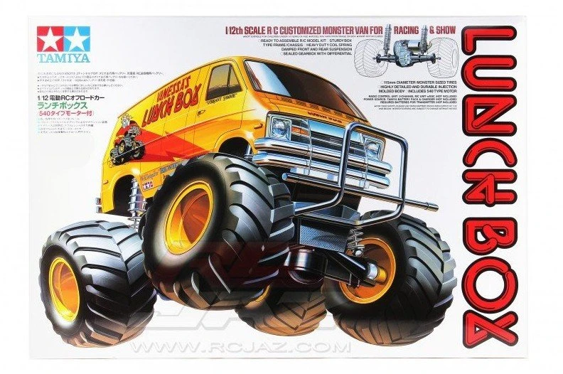 - Another one of Tamiya&39;s classic creations, the R/C Lunch Box (1st released, 1987) was loved for its camp appearance as much as for its R/C performance. The boxy minivan body raised up over monster truck wheels ensure that this R/C van will get attention anywhere you choose to drive it. Use the sides of the van as a canvas to paint your own original designs for the ultimate conversation piece!