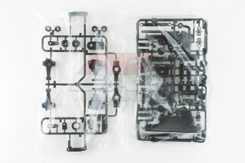 - Square configuration equipped with a motor in the middle of the lightly strength sufficient monocoque frame, front and rear in gear GF-01 chassis that adopted the gear drive 4WD for transmitting power to the wheels. Nearly equal to “square” configuration is the ratio of the wheel base and tread also features. The gear case of the frame one-piece, closed to shut out the sand and pebbles. You create a smooth cornering and a built-in differential gear. Suspension double wishbone 4-wheel independent equipped with friction damper. Sets the steering servo to the chassis left side, it demonstrates the handling characteristics without the habit by isometric 2-piece tie rod.