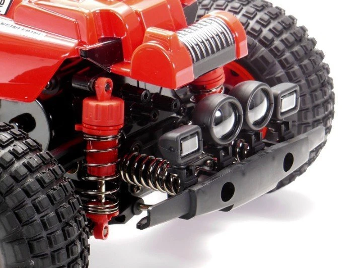 This R/C model assembly kit creates a 4WD buggy, with a lightweight and durable stylized polycarbonate version of the legendary Hot Shot body. The reimagined comical body comes pre-painted in red and all that is needed is the application of the included stickers, and voila! A new, Comical Hot Shot which pays homage to Tamiya’s classic 1985 Hot Shot kit! The GF-01CB chassis in which the body sits on top of is a gear-driven unit that provides a thrilling drive and super wheelies when you jam on the throttle.