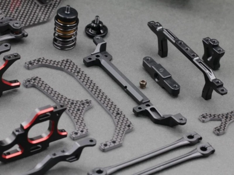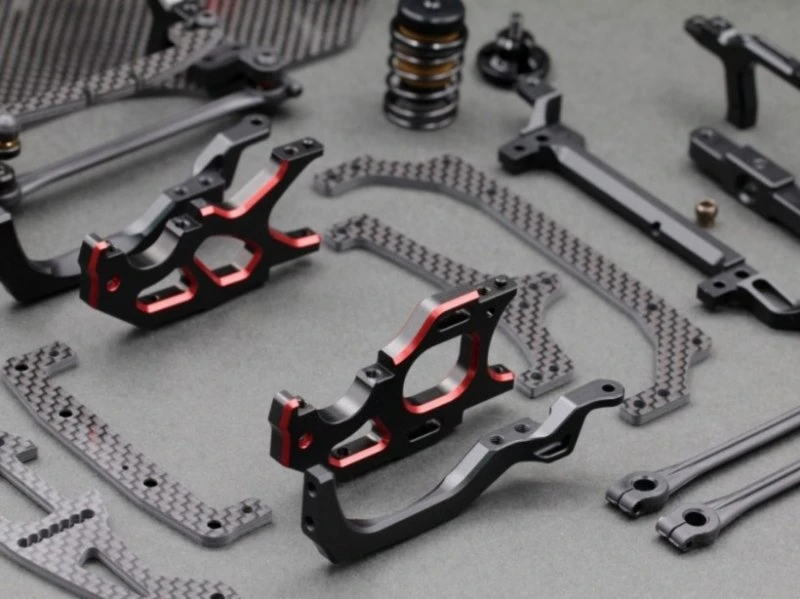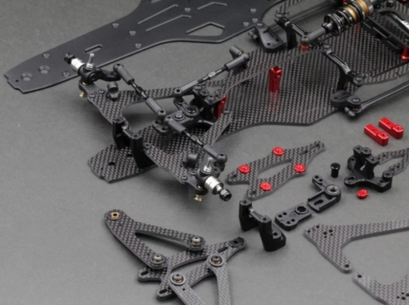 New design graphite main chassis, lower pod plate, rear pod plate, front lower arm, caster adjust plate, top deck, chassis brace, upper pod plate, battery holder.