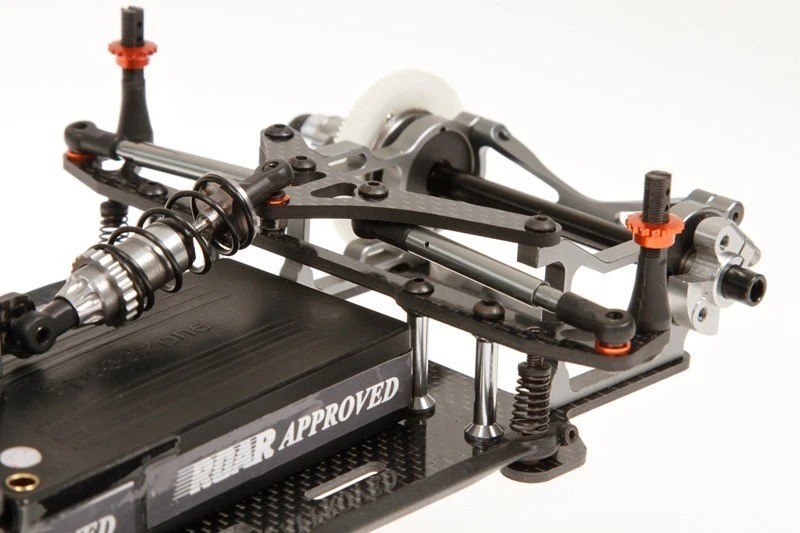 The strong basis is formed by the 2.0mm thick carbon fibre chassis plate designed