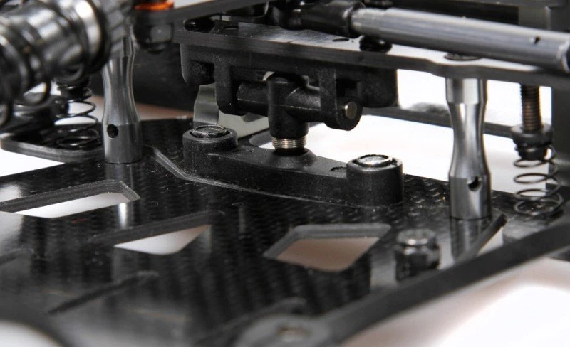 The strong basis is formed by the 2.0mm thick carbon fibre chassis plate designed