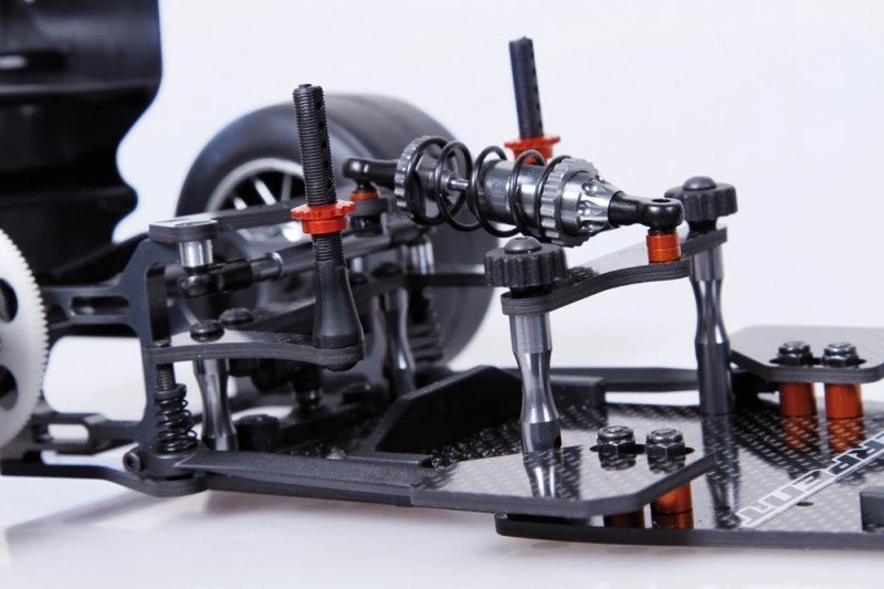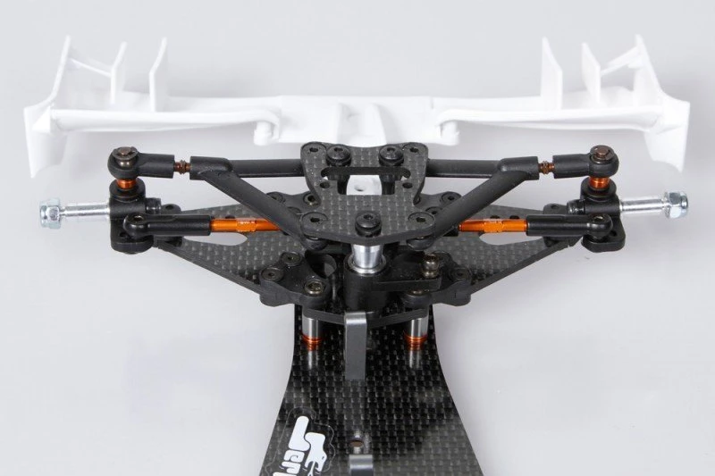 - Front suspension with strong 2.5mm lower carbon wishbones and aero type