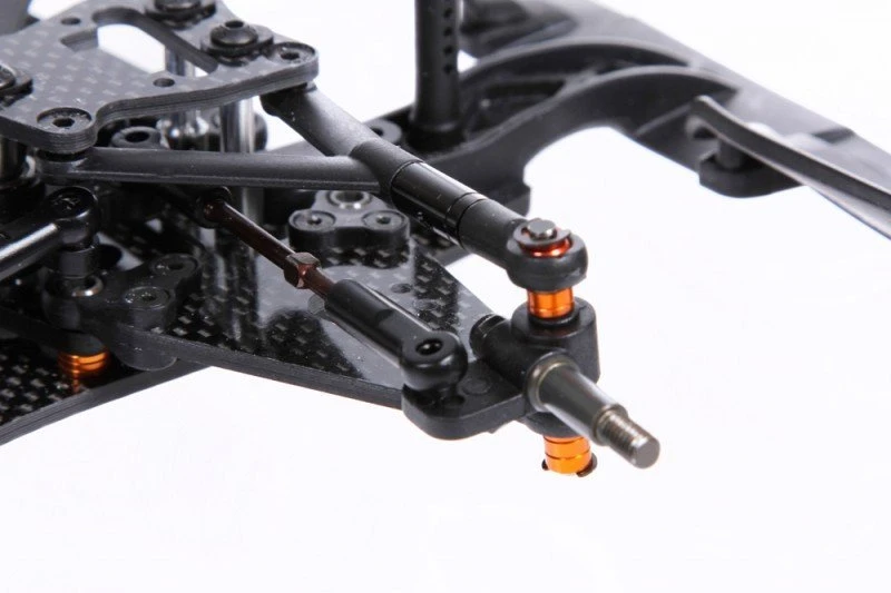 - Front suspension with strong 2.5mm lower carbon wishbones and aero type