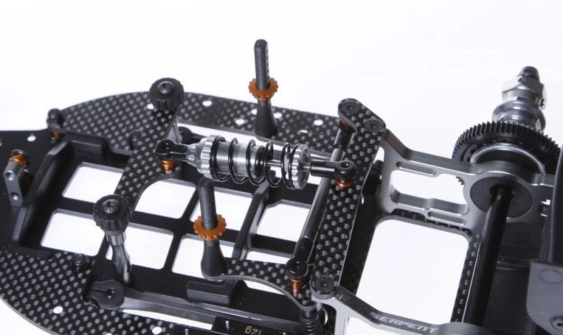 enables also easy adjustment of the rear pod droop. The shock spring is selected