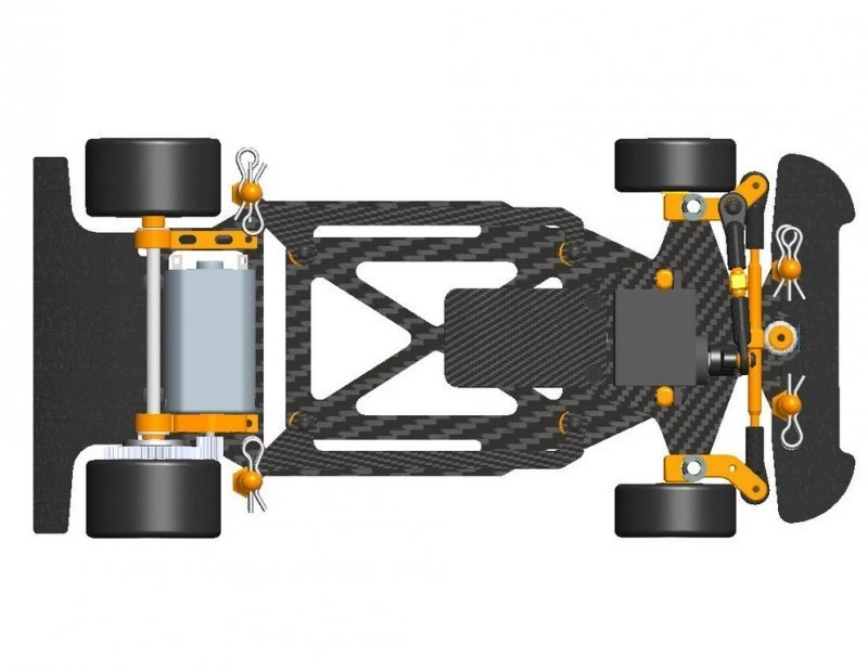 Sufficient space for the lay-down micro-servo 30x30mm ( not included) - Carbon fibre chassis 1.5mm with intergraded flex.