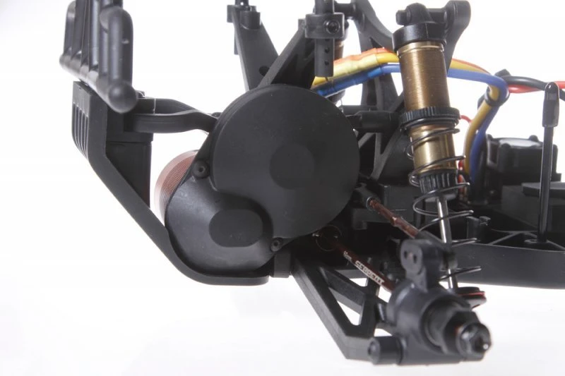 The car features a solid slipper combined with a steel gear, to have a simple and durable system. The slipper clutch is optional. - Motor plate and motor guard