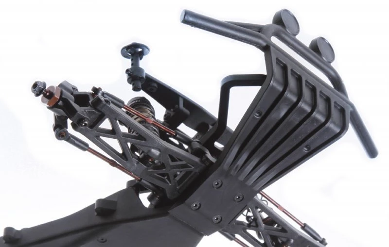 The durable composite front bumper system will absorb the worst of head on crashes and will allow for save nose landings. - Front wishbones and Front and Rear Track Rods