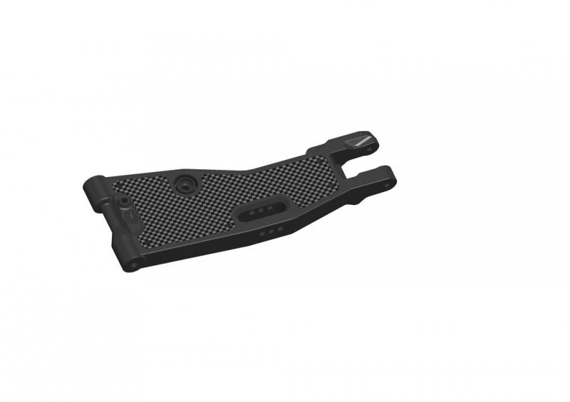 - The front and rear suspension arms, both feature arm plates that can be added, removed or swapped out for Carbon fiber. This feature can be used for a host of reasons, which can include looks and or performance.