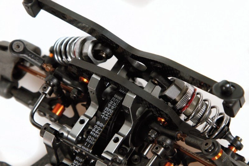 3.0mm carbon fibre shocktowers with 3 positions for upper shockmounting. In