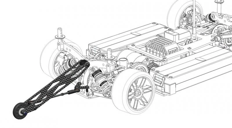 Very strong composite steering blocks with 2 Ackermann positions, L and R use the same . The steering blocks feature inserts, which allow to change the kingpin inclination to a leading or trailing position. The steering blocks also allow use of the optional carbon fibre aero disks to be mounted for less flex and a more direct steering feel.